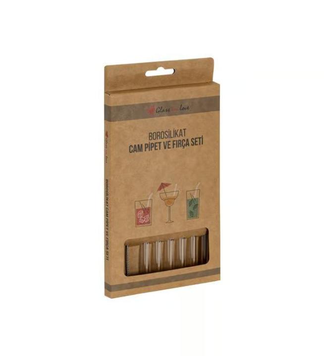 مجموعة مصاصات عصير زجاجية عدد 6 مع فرشاية تنظيف عدد 2 - قاضي ماركت باشاك شهير